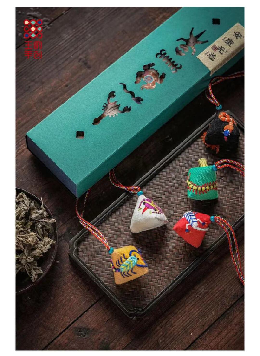 艾绒加上五毒,端午守护的王炸级搭配。艾绒本身具有芳香气味,可提神通窍,作为随身的挂饰或是车挂,既是长效的驱蚊香囊亦是极具中国味的端午装饰物。