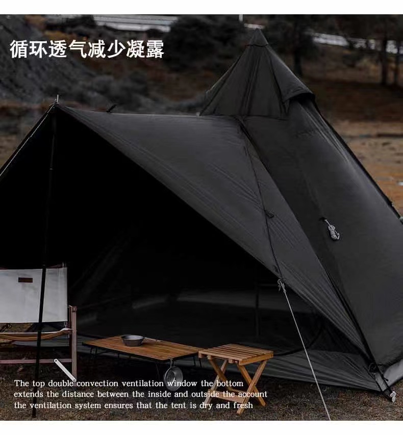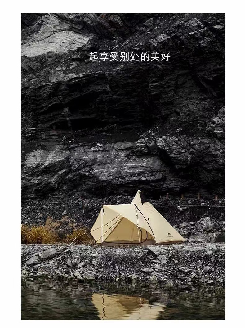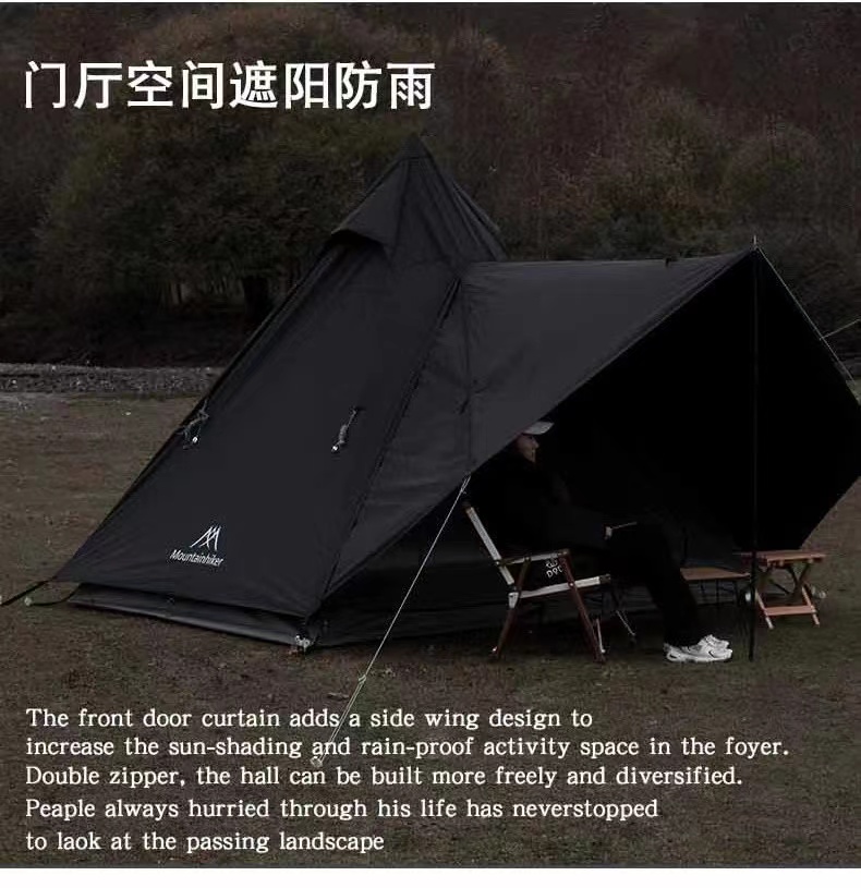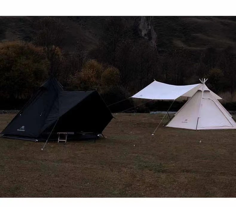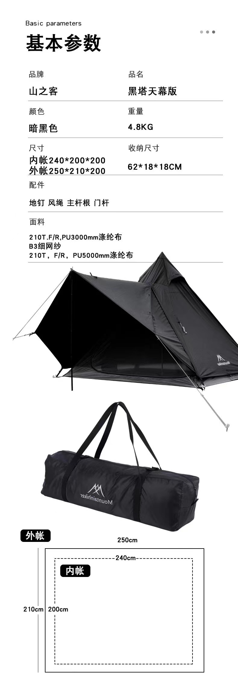 授权正品 山之客 Mountainhiker 帐篷 露营装备印第安帐篷防晒防水户外黑色尖塔带天幕 黑色&米色 配收纳包