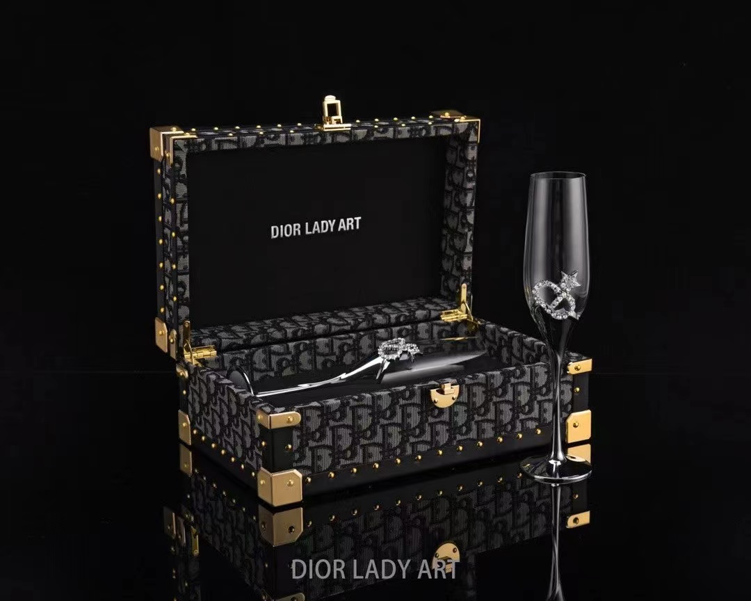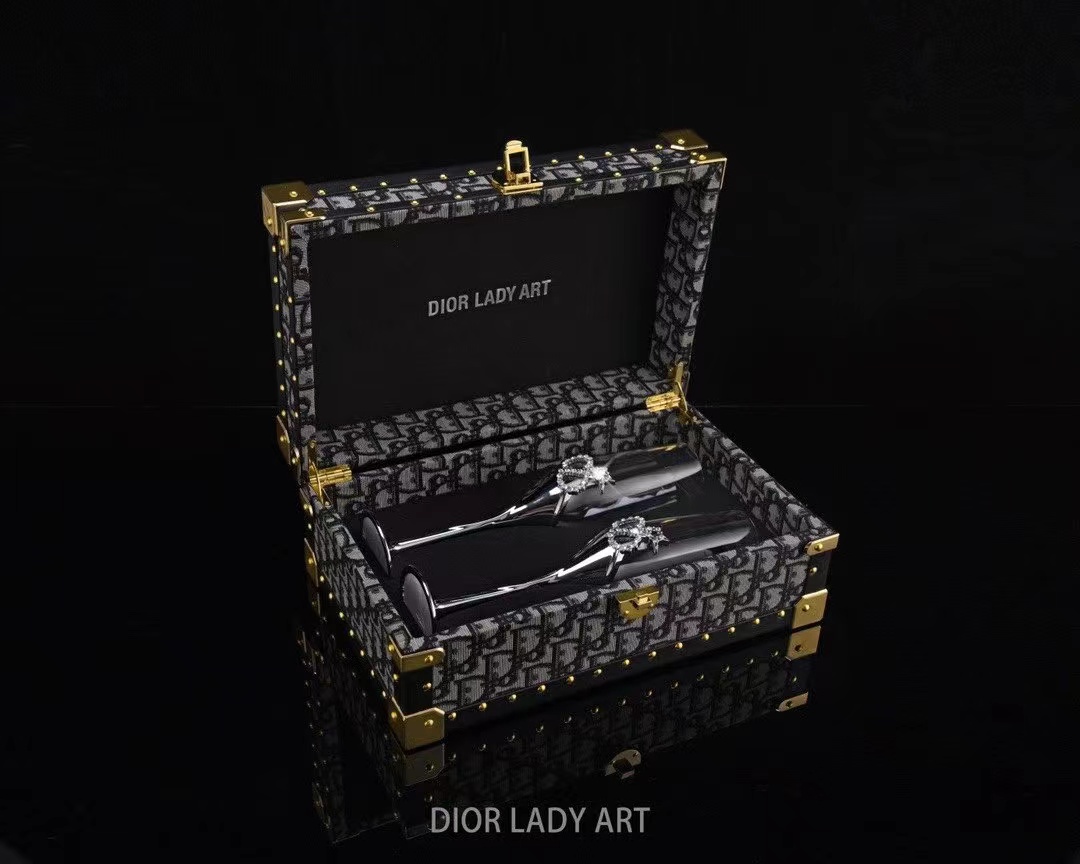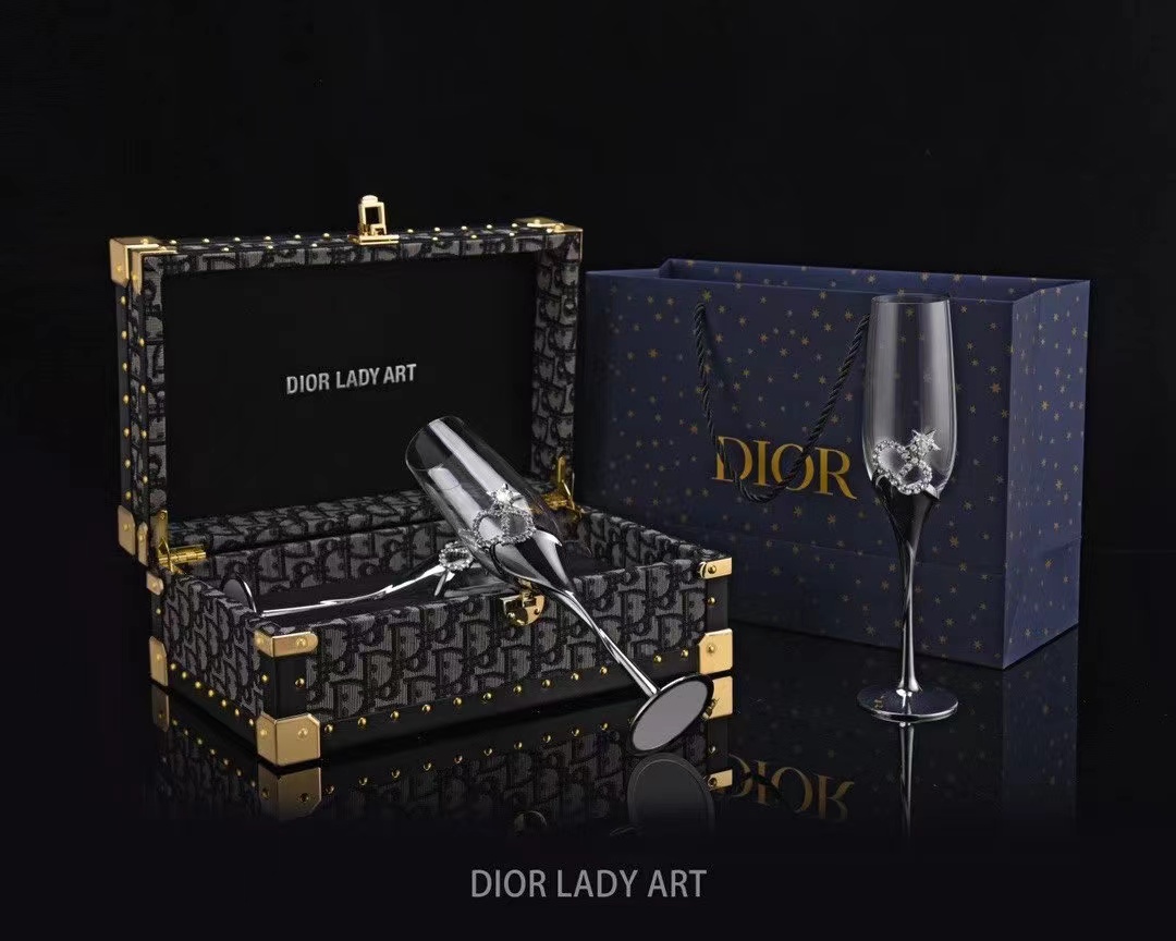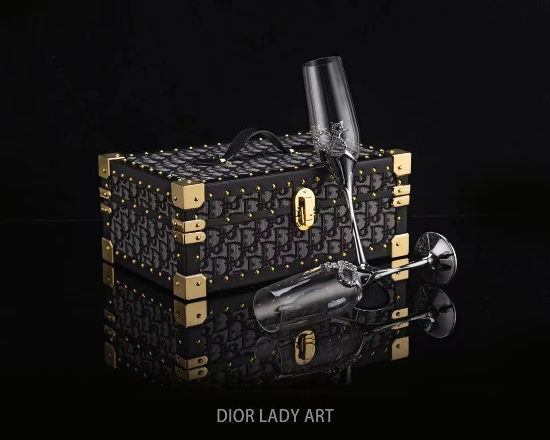 Dior红酒杯 起泡酒杯 香槟杯+原实木包装 DIOR LADY ART#艺术家限量合作系列,揭幕酒会特别订制款的套盒 重磅推荐