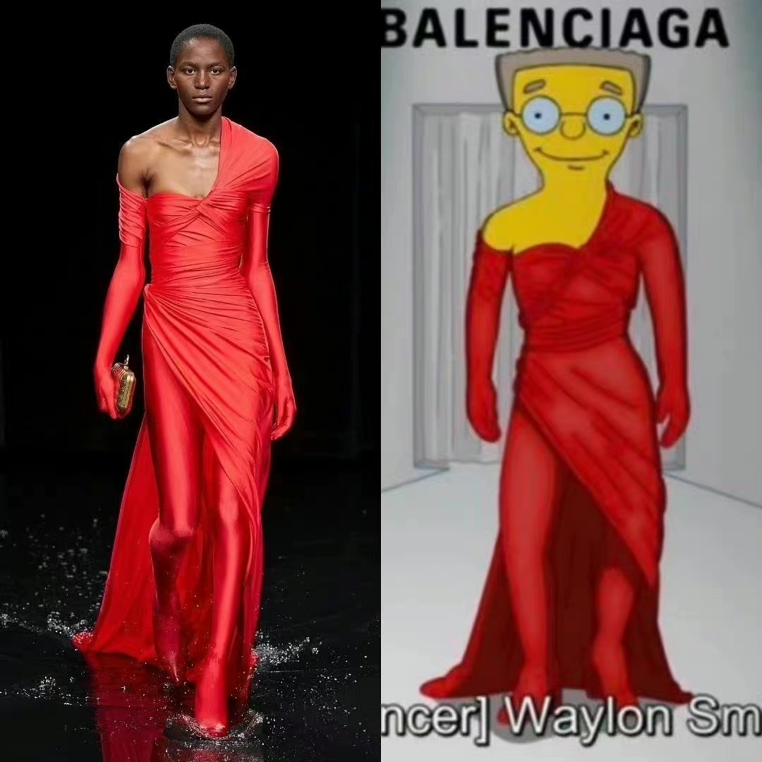 就像在《辛普森一家》特别合作短片中所上演的一样,Balenciaga乐于打破高级时装的固有壁垒。在短片中,品牌创意总监Demna邀请了辛普森一家在内的Springfiled居民为Balenciaga走秀,现实世界的巴黎世家秀场上从来不缺少素人模特的身影,不夸张地说是巴黎世家引发了选用素人走秀的潮流。这是Demna所主张的一种平等化时尚,秀场不该只由专业模特独占,而应该面向更多的普通人。