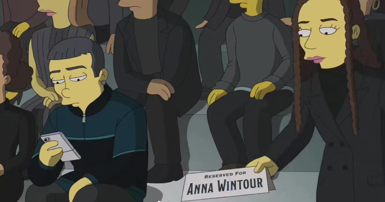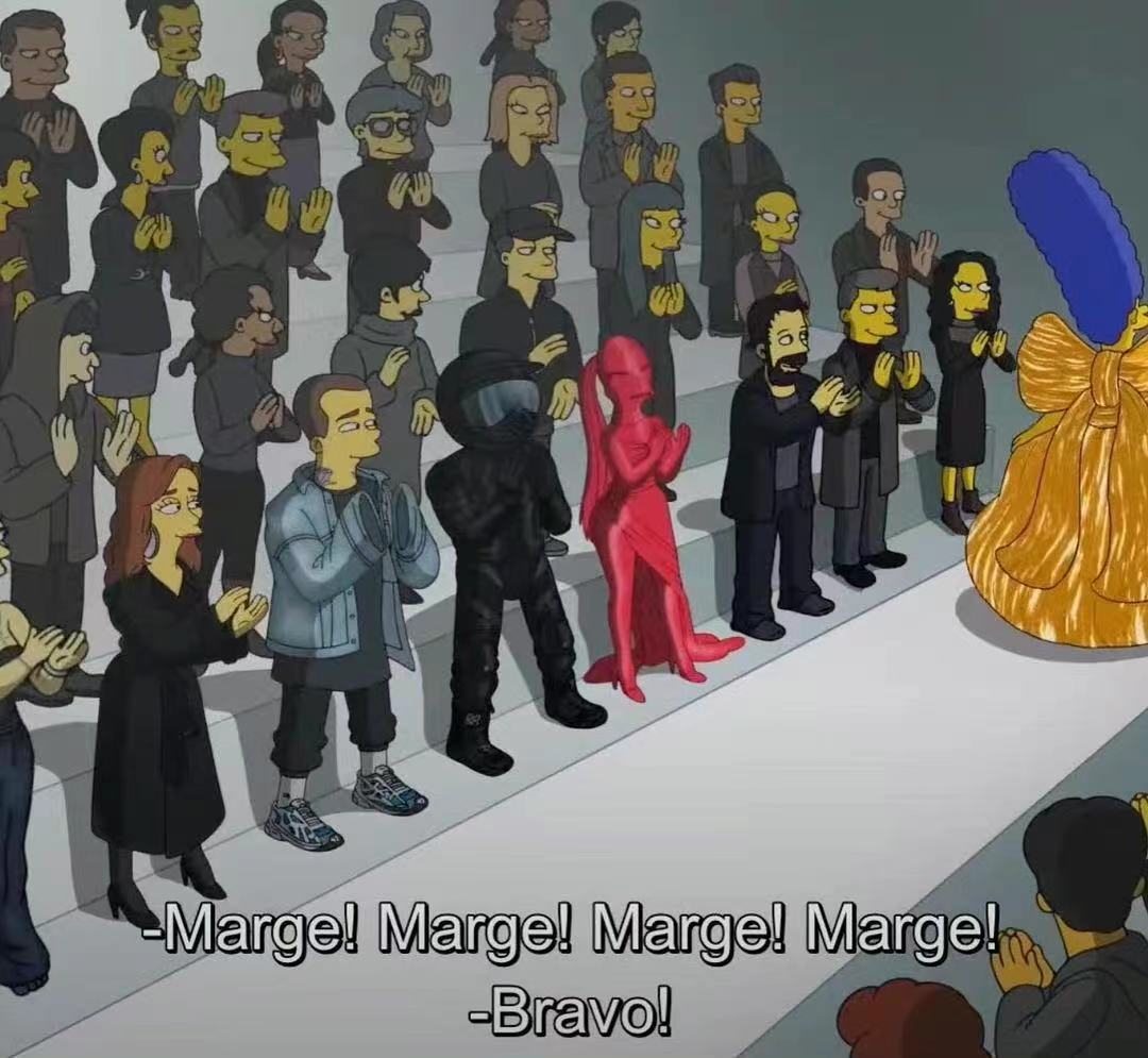 除了看辛普森家老熟人穿 Balenciaga 经典设计走秀,你还能看到二次元版的在看台上还可以见到辛普森版的Isabelle Huppert 于佩尔, Demna Gvasalia德姆纳·格瓦萨里亚,侃爷Kanye West坎耶·维斯特,Justin Bieber贾斯丁比伯 以及时尚女魔头 Anna Wintour安娜·温图尔等