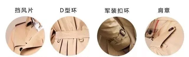 风衣右侧胸前的位置比左边多一块布,它叫做GunFlap枪皮瓣,主要是用来垫枪托的,可以减少机械对身体的后坐力,不过现在主要是装饰的作用。风衣的背后有一块多出来的布,只要把腰带扎紧,那块布就可以挡雨,这样你的背就不会被雨淋湿了。