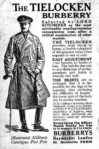 一战期间,Burberry为军队提供服饰与一些军备物质,英军指定军装供应商。