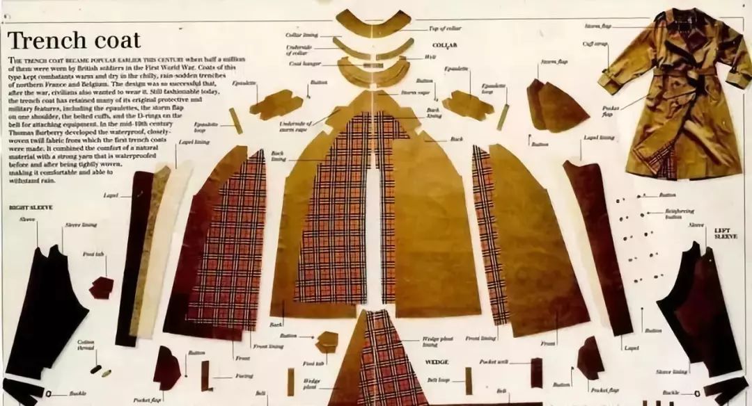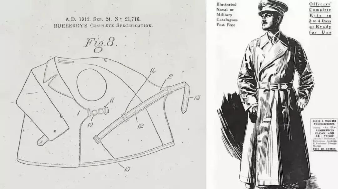 1895年,Burberry为英国军官设计了一款叫Tielocken的军装大衣,并获得英国专利,成为了今天风衣的鼻祖。从风衣的各部分细节就可以看出这妥妥是曾经的军装。
