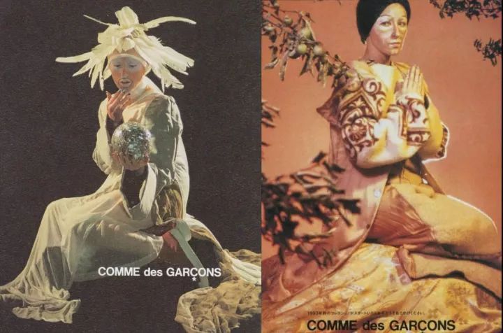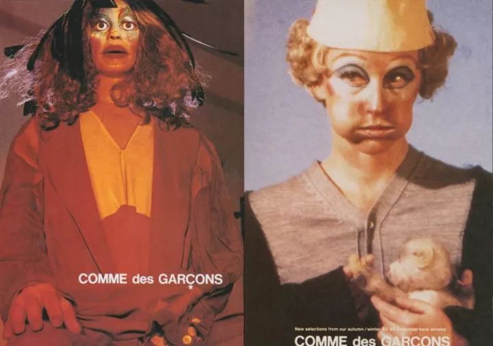 当中值得提及是川久保玲与摄影师Cindy Sherman的合作。在1993年,在川久保玲看到Sherman在Harper’s Bazaar上的作品后,她主动联络Cindy Sherman前来拍摄1994年秋冬广告,并以此为纽约SoHo店的陈列,其旨在挑战时尚摄影的样式和规则。她的影像专注在分离的模特儿和古怪的氛围上,让最重要的服装成为配角,在杂志随处可见的“理想美”中, Cindy Sherman呈现的是彷佛怪奇展上的“不美”,川久保玲拒绝了摄影和店内陈设传统的诠释方式,与Cindy Sherman不约而同地做了场破坏秀。