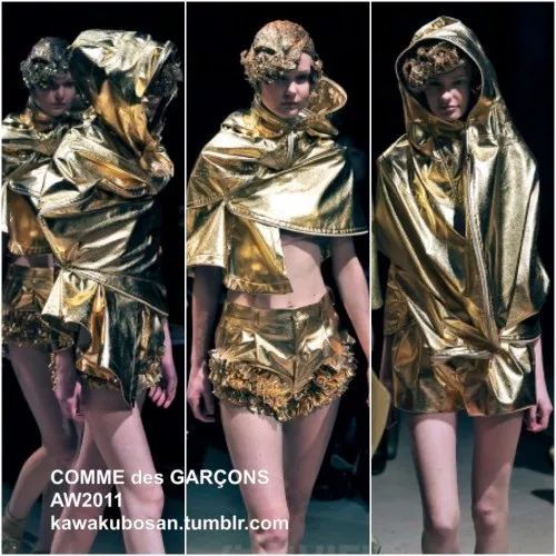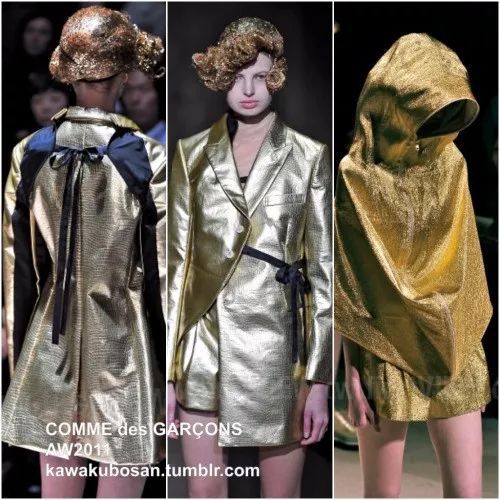 之后,Comme des Garçons 2011年秋冬闭幕,全部的模特儿身穿金色彷佛萤火虫般穿梭在舞台上。「继黑色和红色之后,我的第三个颜色就是金色。」川久保玲在曾解释道,「根据研究显示,如果让小婴儿选一个颜色的话,他们通常会选金色。所以这次我为了纽约Chelsea店幻想了一个充满魔力和亲密感的金色世界(原本Chelsea店内部是铝白色)。」,《AnOther》总编Susannah Frankel也对此表示,「她喜欢这GOLD的发音,金色让她联想到杜拜。」品牌也在2015年秋冬推出PLAY金色爱心系列。