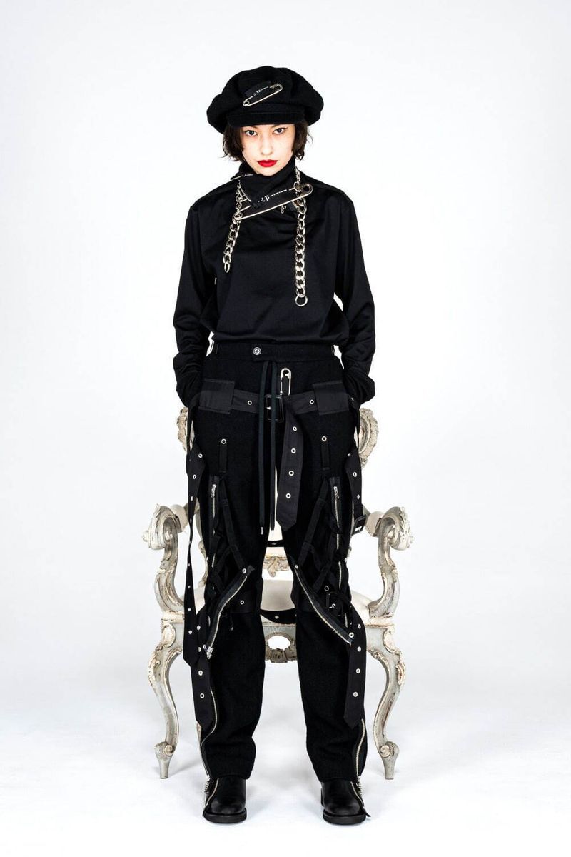 在2021年,宫下贵裕继续走他自己的孤独的朋克摇滚之路。21AW的数件绑带设计的衣服,确实和山本耀司有心有灵犀的感觉。而这种设计,归根溯源,都找回到了Vivienne Westwood,找回了朋克摇滚最初的模样。