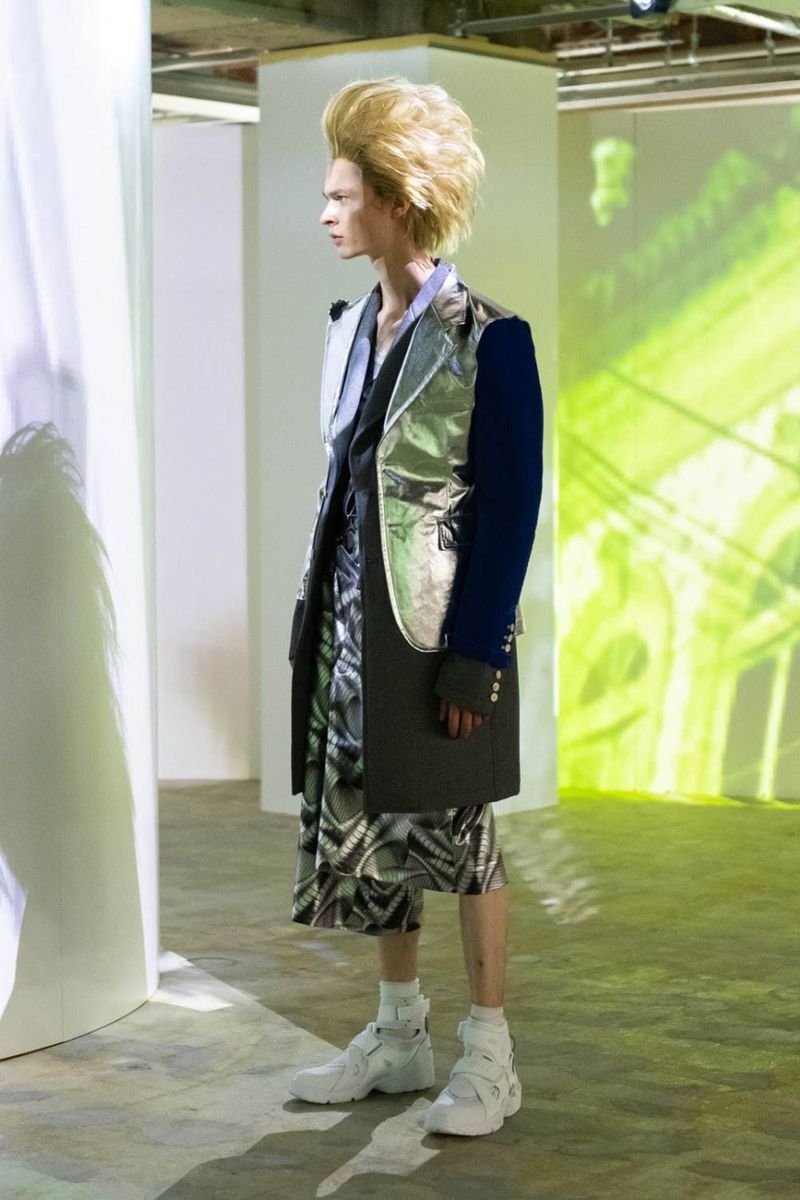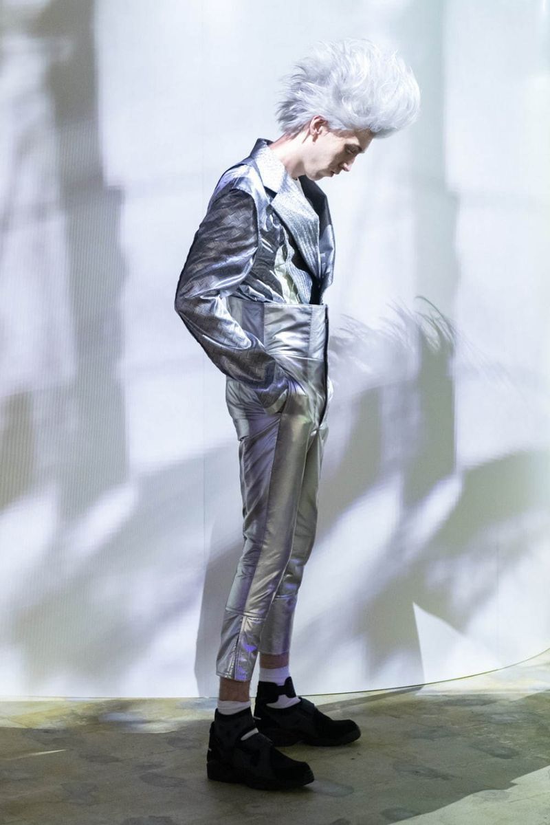我最喜欢的设计师之一川久保玲连续两季的主题都和战斗有关:20AW,color resistance, 21SS, metal outlaw。川久保玲采取的手法是使用最通俗易懂的设计元素来对抗:色彩。20秋冬她给大家带来很多出挑的鲜艳色彩,而21年春天则更直接的使用了亮眼的反光材料。