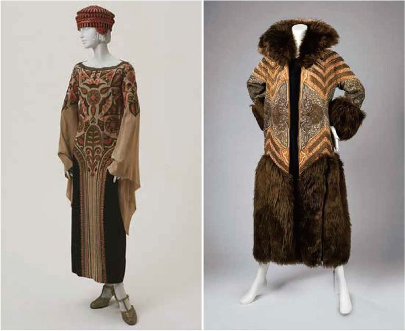 他擅长大胆的亮色搭配,使用富有亚洲文化和俄罗斯民俗风情的面料和印花,他将妇女从腰腹的束缚中解放出来。此外, Poiret 拥有多个开创性的设计,如:狭长的高腰线轮廓、奢华的皮草内里大衣、裙裤等,其中最知名的莫过于霍步裙(hobble skirt,又名蹒跚裙)。