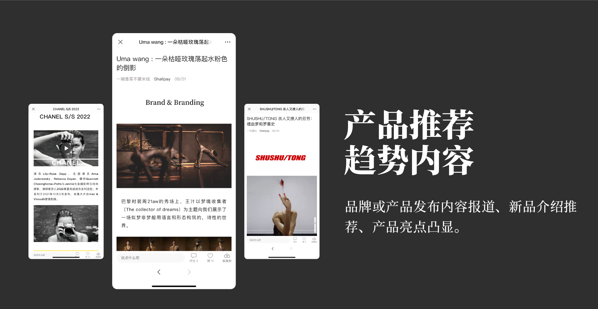 品牌或产品发布内容报道、新品介绍推 荐、产品亮点凸显。