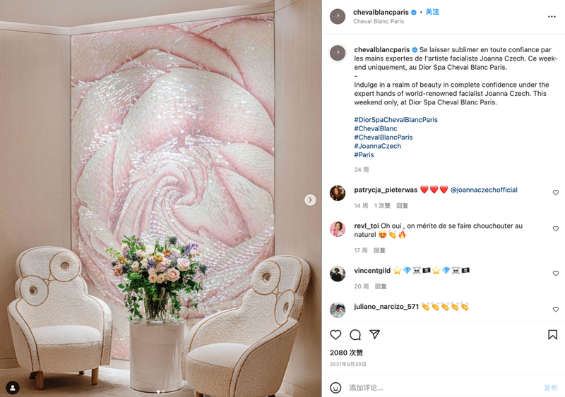 近年来,以 LVMH集团为代表的奢侈品集团,更是进一步加速在奢华酒店领域的布局。2021年,集团旗下奢华酒店品牌 Cheval Blanc(白马酒店)的巴黎店正式营业,这家酒店内设有 Dior 的 Spa馆及精品店,提供定制化皮肤护理方案的同时,出售品牌额护肤、彩妆、香水及Dior Maison系列产品。